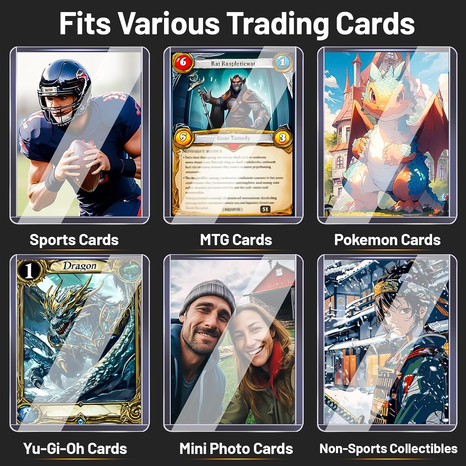 Perfect for safeguarding sports cards (basketball, baseball), MTG cards, and other collectibles, these sleeves and loaders offer a snug yet gentle fit. Your standard-sized cards (2.5" x 3.5") slide in smoothly without tight squeezing or corner damage, while the clear design displays them vibrantly.