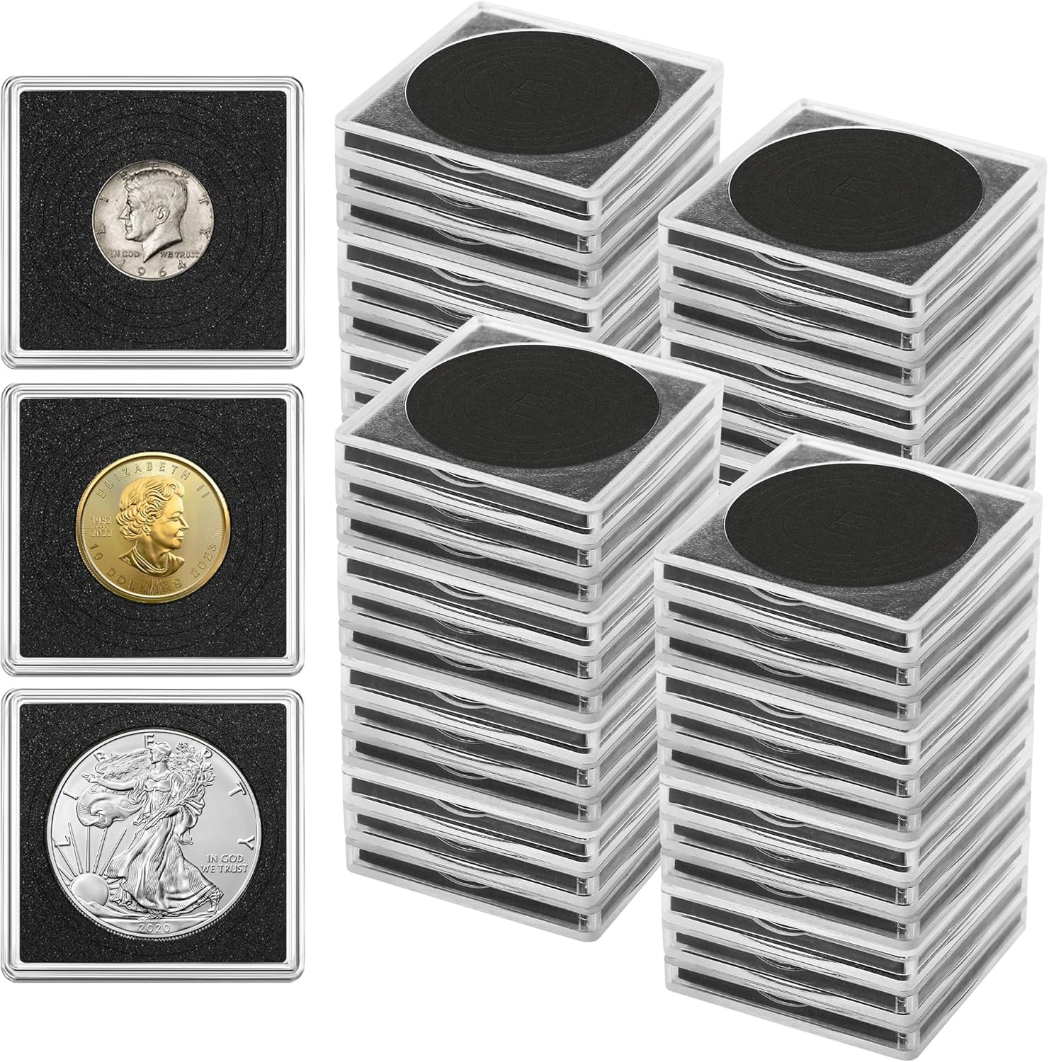 20 Pcs Coin Holders for Collectors, Clear Coin Cases with 5-Size Sponge Gaskets 20/25/30/35/40mm, Plastic Coin Slabs and Coin Protectors for Silver Dollar Collectors Collection Supplies, Black