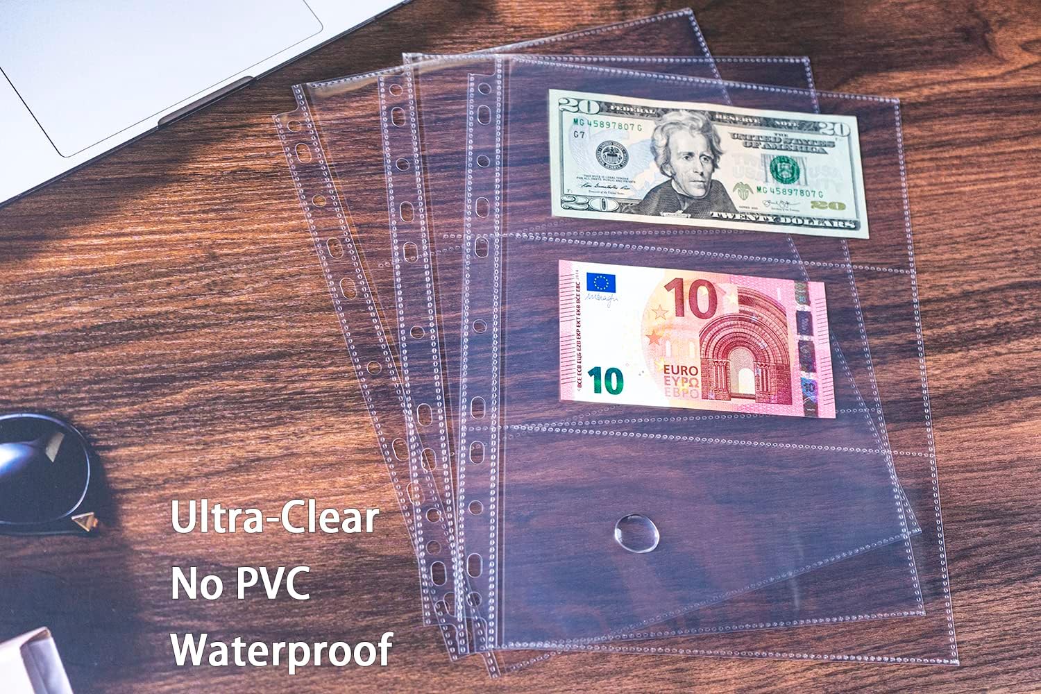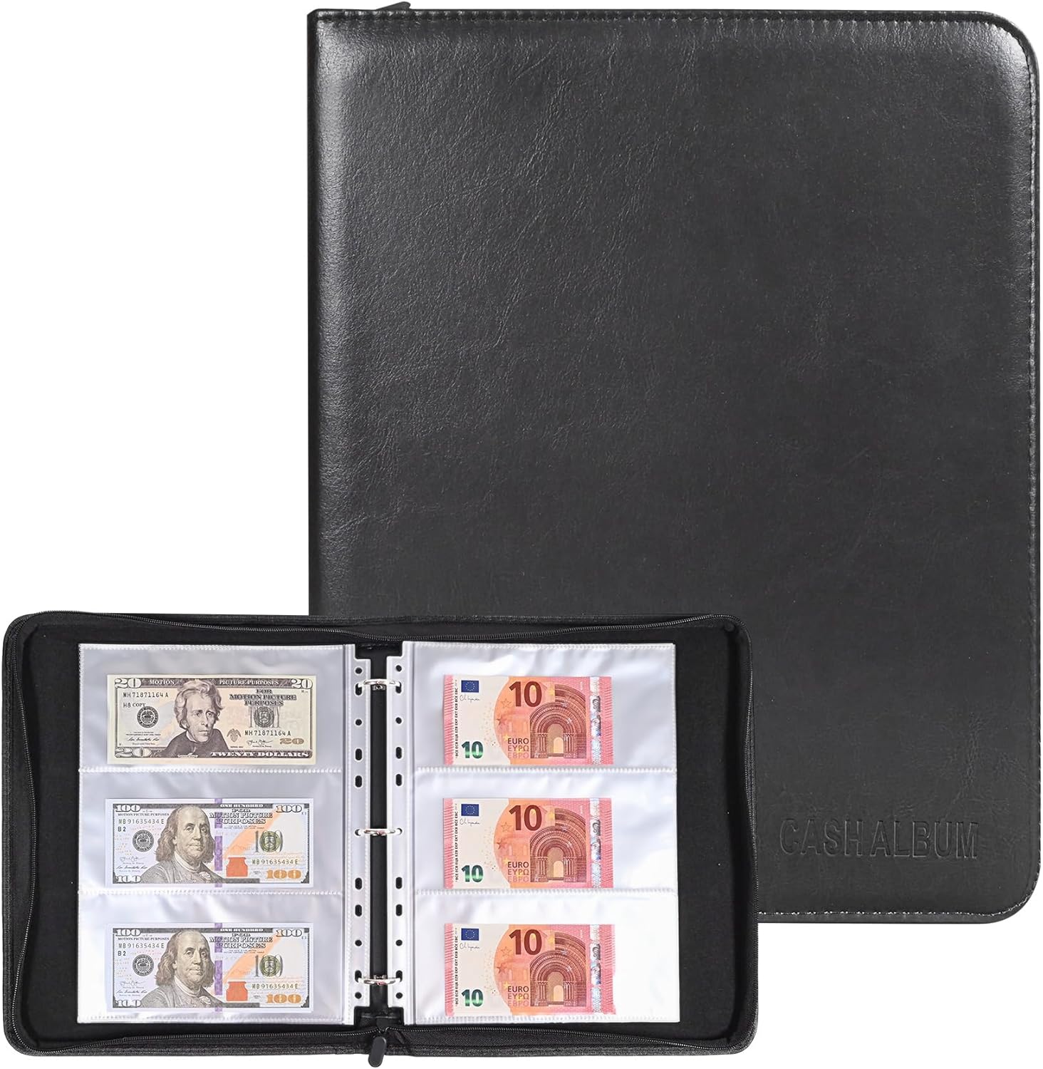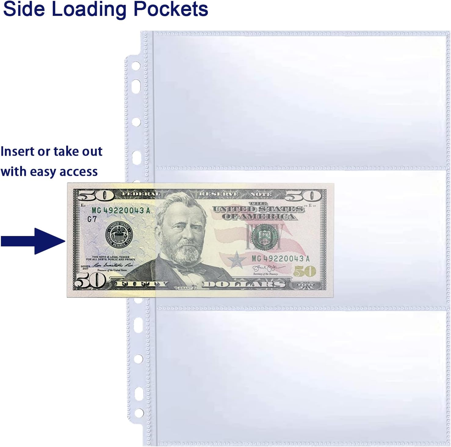 30 Pack 180 Pockets 11 Hole Currency Collection Sleeves, Cash Collecting Album Refill Page, Double Side 3 Pockets Currency Sheets for Collecting Dollar Bills, Paper Money, Foreign Currency and Coupons