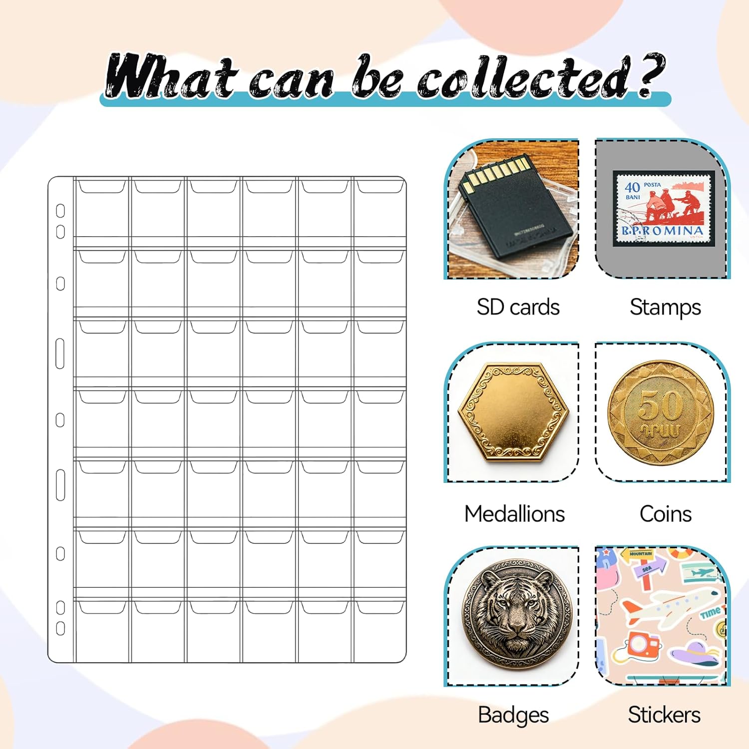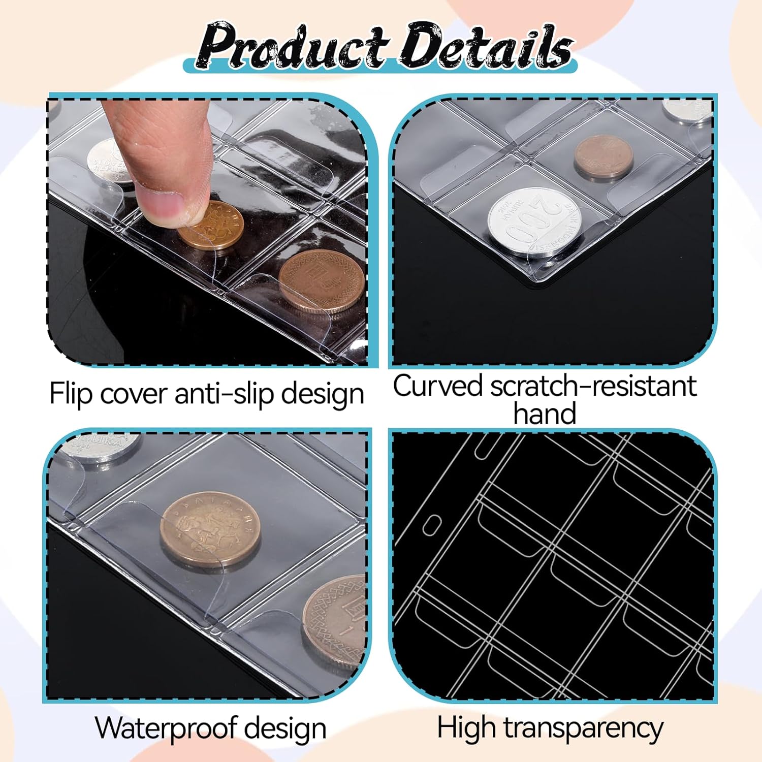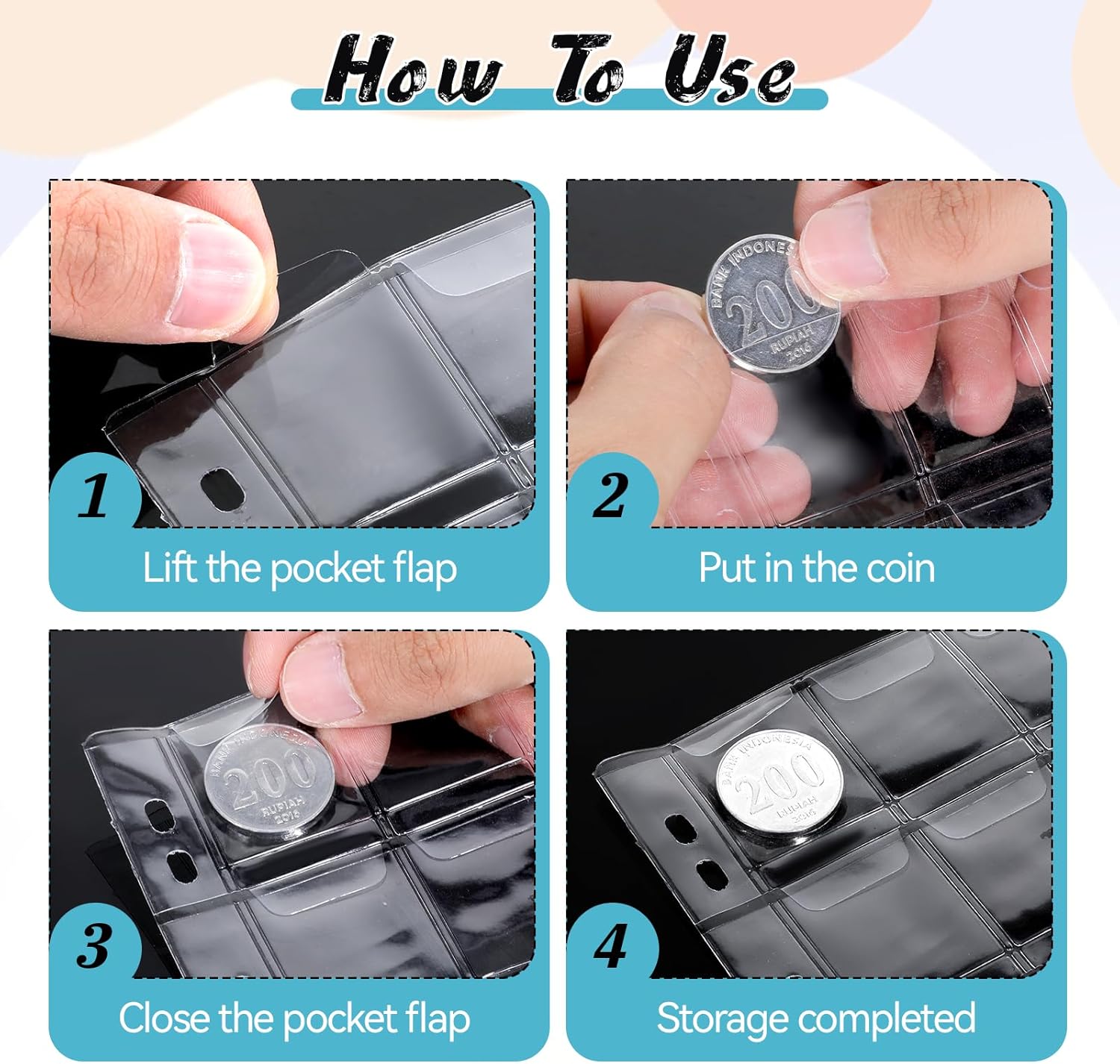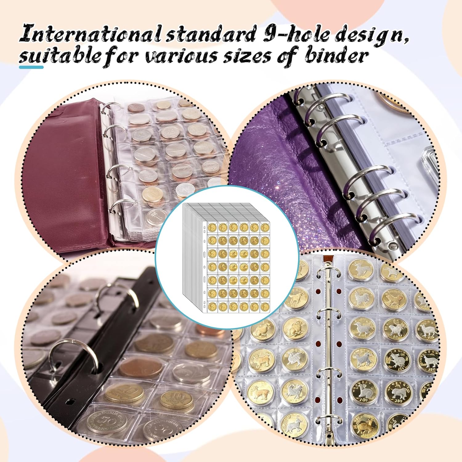 - PACKAGE INCLUDED – 10 sheets coin holders